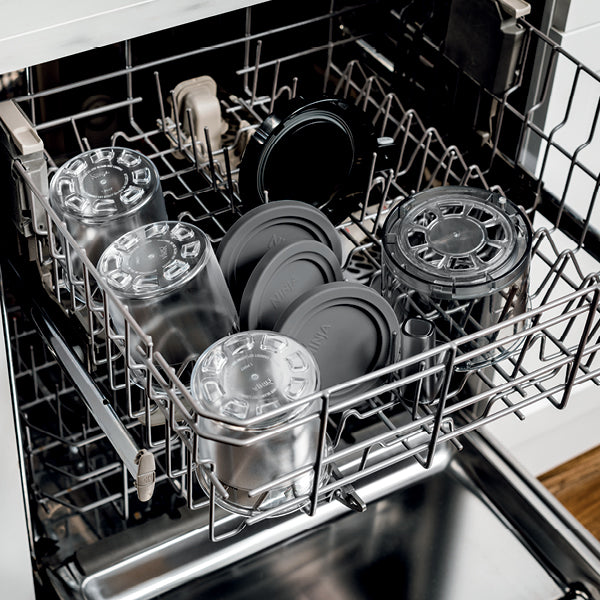 "手動清潔: 注意: 清潔前,請先沖洗外層鎖定蓋,然後按下攪拌槳閂, 將攪拌槳從鎖定蓋上取下。在溫肥皂水中手洗容器、杯蓋和攪拌槳。請使用帶柄的洗碗工具來清洗攪拌槳。徹底沖洗所有零件,然後自然風乾。 洗碗機清潔: 配件可放置於洗碗機上層清洗,但不可使用加熱烘乾。放入洗碗機之前,請務必將攪拌槳、製冰杯、外層保護碗和杯蓋拆開。"